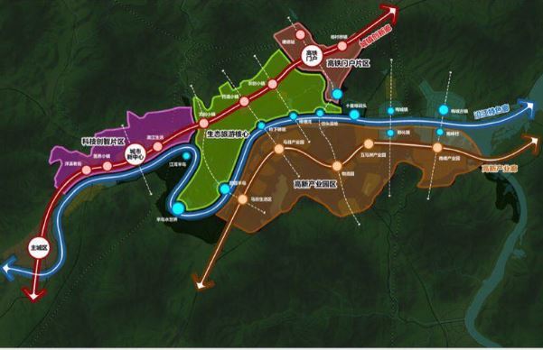 據規劃,高鐵新區占地面積為105平方公里,東起十里埠綜合作業碼頭,西至清溪翠谷,南至馬南高新園,北至杭黃高鐵沿線,橫跨了高鐵沿線的洋溪街道、下涯鎮、楊村橋鎮等四大要鎮。