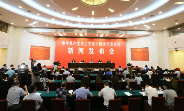6月7日,中國共產黨浙江省第十四次代表大會新聞發布會在省人民大會堂舉行。記者 吳煌 攝