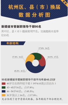 據杭州市委組織部統計,這次區、縣(市)換屆,新提拔的90名市管副職領導干部中,現任鄉鎮(街道)黨政主要負責人有29名,占32.2%;曾經擔任過鄉鎮(街道)黨政主要負責人有30名,占33.3%。兩者合計占65.5%,充分體現了基層導向。