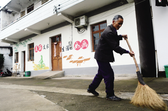 鞋塘辦事處老黨員清掃村莊小路 胡肖飛 攝