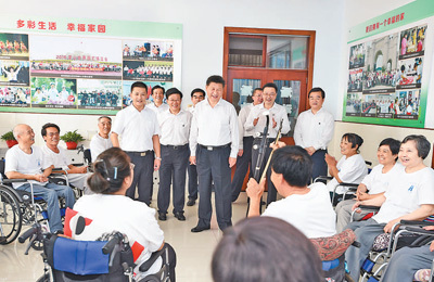 7月28日,習近平到河北唐山市調研考察。這是習近平在唐山市截癱療養(yǎng)院活動室看望截癱傷員并欣賞二胡伴唱《唱支山歌給黨聽》