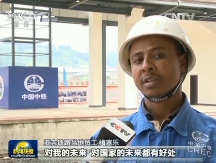 亞吉鐵路當?shù)貑T工梅塞樂:這條鐵路開通后,將大大縮短從埃塞到吉布提的時間,對我的未來、國家的未來都有好處。