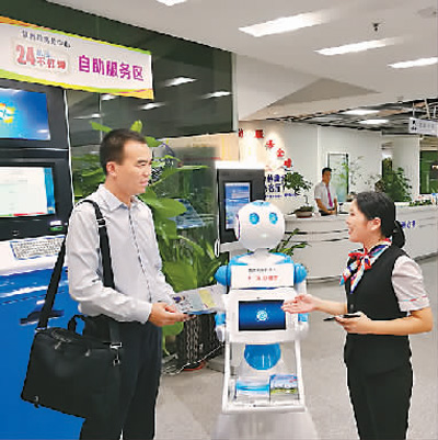 廣州市政務服務中心琶洲分中心使用24小時自助終端機和智能機器人提供貼心服務。