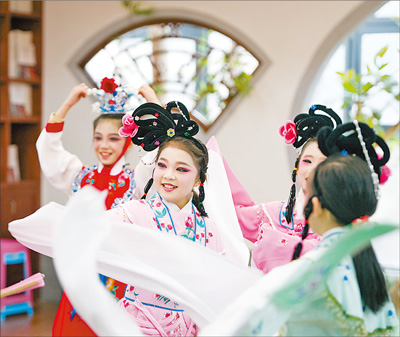 12月14日,武漢長春街小學的小朋友在戲曲課上練習。 肖藝九攝