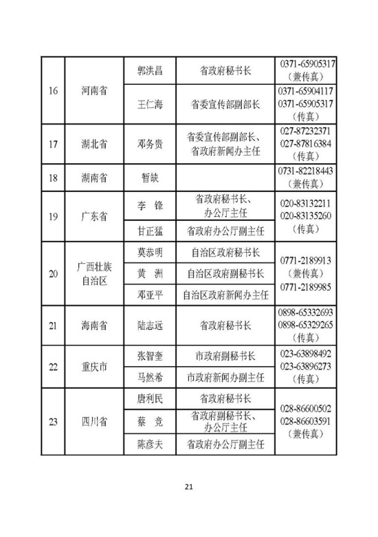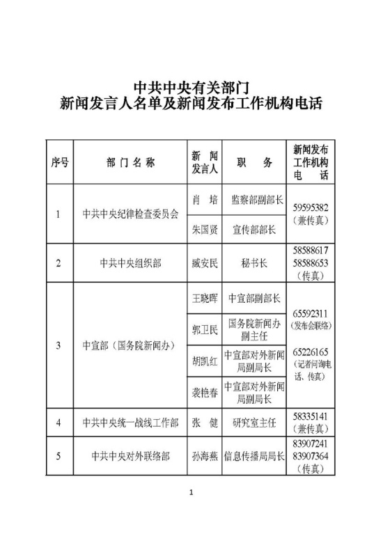 2004年,國新辦首次集中公布62個國務院部門75位發言人名單及聯系方式,其后每年年末都會公布新的發言人名錄。今年的新版名錄包括13個中共中央部門、3個人民團體、最高人民法院、最高人民檢察院和78個國務院有關部門發言人名單和聯系方式,比去年增加了國務院發展研究中心、國家行政學院、國家自然科學基金會、中華全國供銷合作總社四個部門。