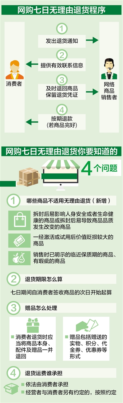 “七日從哪天開始算”“錢應該退到哪”“用了優惠券怎么辦”“退貨運費誰來擔”……楊紅燦介紹,辦法明確規定了各方主體的規定動作、時間節點和延誤責任。具體分為四步: