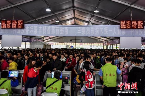 1月11日,廣州火車站廣場上,大批返鄉(xiāng)旅客排隊(duì)驗(yàn)票進(jìn)站