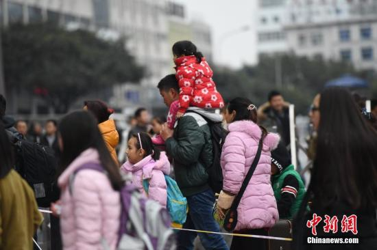 1月10日,2017年春運(yùn)大幕進(jìn)入3天倒計(jì)時(shí),成都火車北站已是客流如潮,為躲避高峰,“小候鳥”在父母的陪同下提前返鄉(xiāng)。