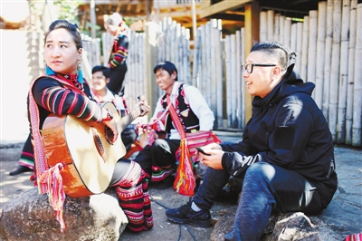 圖為歌手龐龍(右一)在云南省普洱市瀾滄縣老達保村采風。