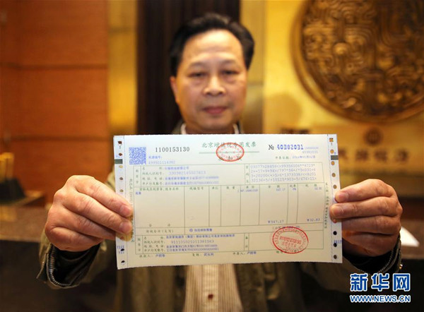 營改增試點全面推開后的全國首張增值稅發票。新華社記者殷剛攝