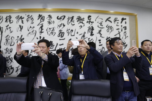 全省推進(jìn)媒體深度融合工作座談會與會代表參觀浙報(bào)集團(tuán)"中央廚房"。記者 董旭明 胡元勇 朱衛(wèi)國 攝